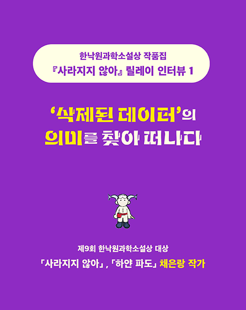 제9회 한낙원과학소설상 대상 「사라지지 않아」 , 「하얀 파도」 채은랑 작가 Q. 「사라지지 않…