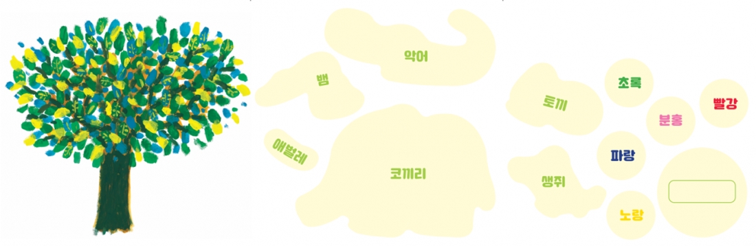 - 활용 방법: 열매와 동물을 뜯어 색칠하고 나무 이미지를 활용해 나만의 이야기를 만들어 보아요.