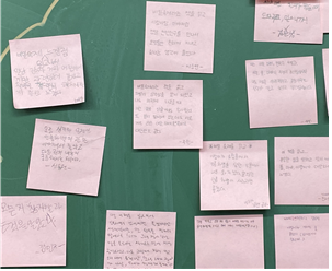 이랑이가 쇼핑몰에서 동양인 차별을 당한 챕터를 읽고 나서는 모둠 친구들과 함께 이랑이처럼 한국인(동양인)을 향한 차별적인 말을 들었던 경험과 그때의 기분을 나누었다. 인종차별적인 말을 한 점원에게 사과받기 위해 종이를 들고 매장 앞에 선 주인공들에게 해 줄 수 있는 응원의 말을 적어 보기도 했다.