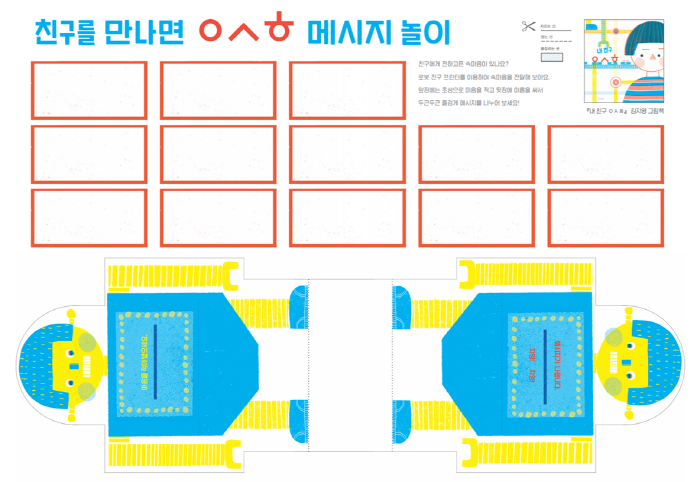 - 활용 방법: 메시지 카드 앞장에는 초성으로 마음을 적고 뒷장에 이름을 써서 로봇친구를 통해 두근두근 속마음을 나누어 보아요.