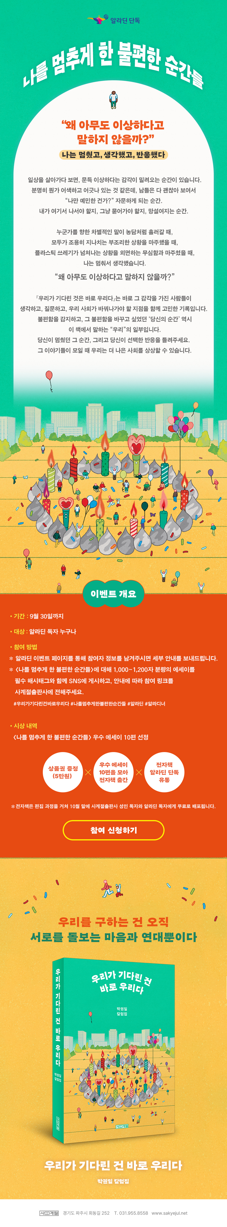 : 알라딘 이벤트 페이지를 통해 참여자 정보를 남겨주시면, 세부 안내를 보내드립니다.