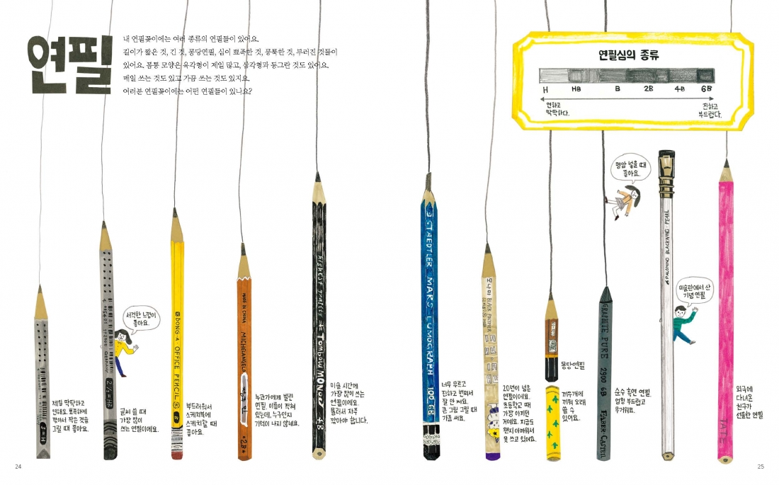 3. 문구 덕후로 가는 길 책상에 놓인 다양한 물건 중에 어린이들의 호기심을 자극하는 것은 단연코 문구입니다. 연필이라고 통칭을 하지만 연필도 다 같은 연필이 아닙니다. 무르기와 진하기에 따라 연필들을 구별해 냅니다. 지우개도 마찬가지 입니다. 각종 풀과 테이프들도 형태와 쓸모가 다양합니다. 문구의 개별 속성을 샅샅이 알아보고 그 특징별로 쓰임도 정확하게 알아봅니다. 문구의 올바른 사용법을 습득할 뿐만 아니라 애정을 갖고 아끼는 마음도 함께 키울 수 있습니다.