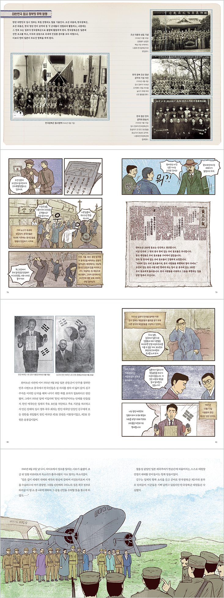 어렵고 복잡할 수 있는 이야기를 좀더 쉽게 이해할 수 있도록 절반을 만화로 구성했다. 봉오동·청산리 전투, 이봉창 의사의 의거, 임시 정부의 귀국 등 흥미롭고 중요한 사건들을 만화로 보며 쉽고 재미있게 읽을 수 있다.