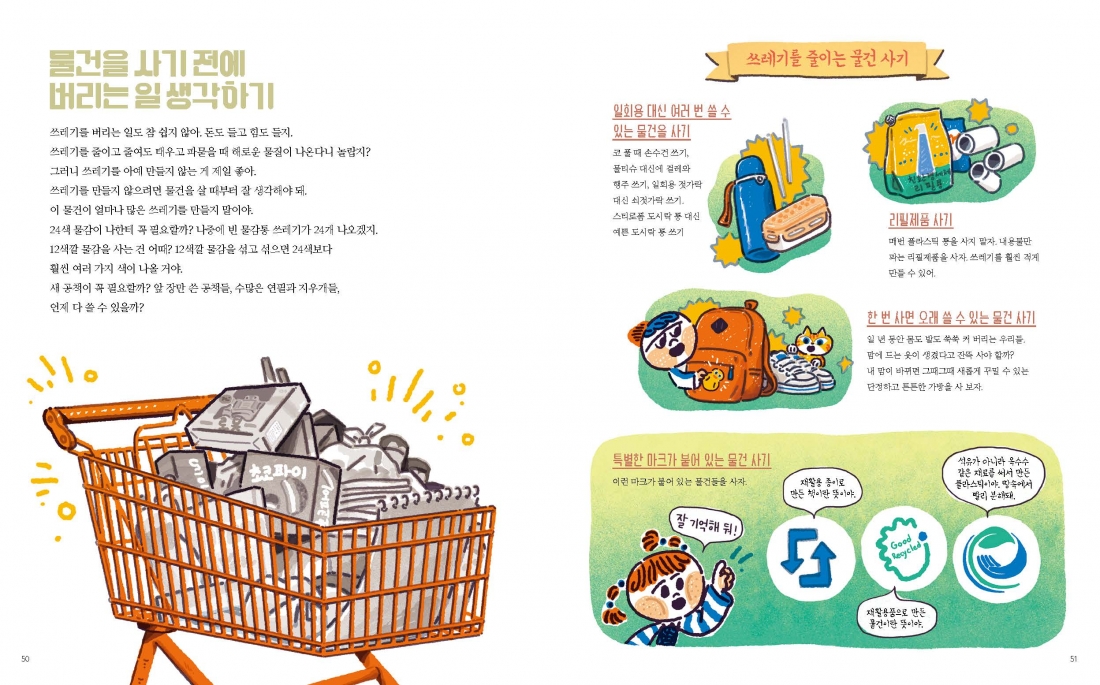 이 책을 읽고 나면 조금 불편해질 수 있습니다. 쓰레기를 얼마나 많이 버리고 있는지, 어떤 것들을 재활용할 수 있는지 알게 되면 한 번이라도 더 몸을 움직이게 됩니다. 분리수거할 때에도 여러 주의 사항까지 철저하게 지키게 되지요. 더욱이 중요한 것은 애초에 꼭 필요한 물건인지 생각하고 쓰레기를 줄이는 생활 습관을 갖는 것이지요. 오늘날 어린이•청소년들은 환경 문제에 있어서는 어른 세대보다 더 진지하고 민감합니다. 그 어린이들이 이 책을 읽고, 더 많은 목소리를 낼 수 있기를 바랍니다.