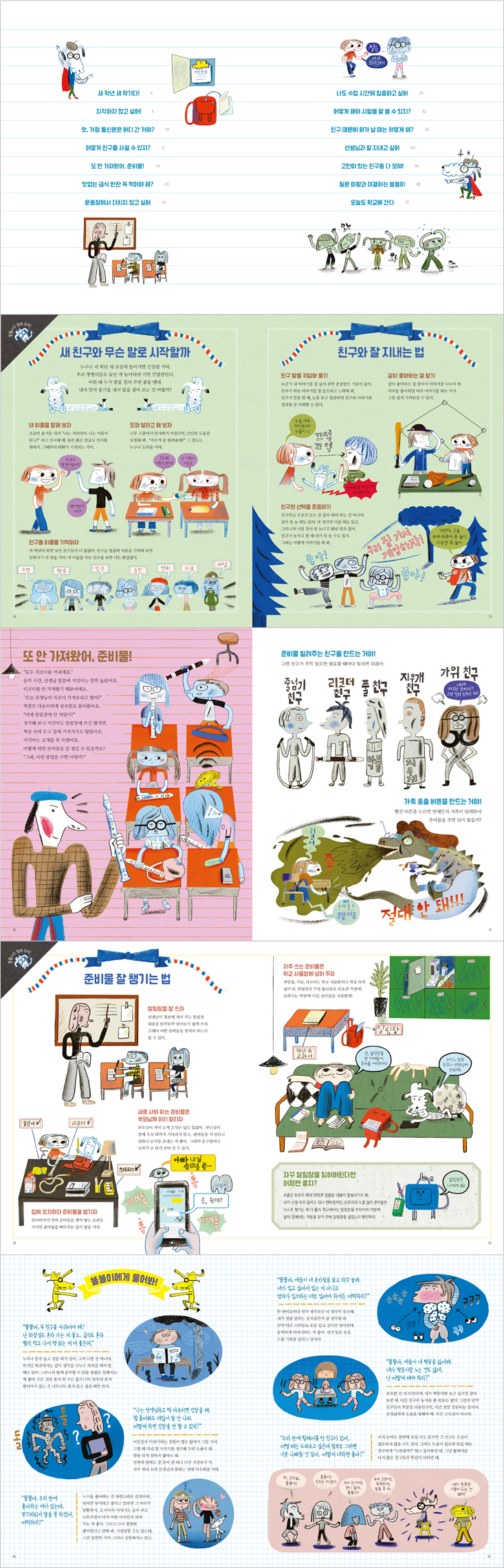 학교생활을 즐겁게 하려면 무엇부터 해야 할까요? 이 책은 가장 기본적인 생활 습관들도 중요하다고 말합니다. 우선 지각하지 않기 위해서는 잠을 충분히 자야하니까요. 늦게 자는 습관을 고치는 방법들이나 준비물을 미리미리 챙기는 법, 운동장에서 안전하게 노는 법처럼 기본적인 것들을 자세하게 알려 주어 하나씩 바꿔나갈 수 있도록 도와줍니다.